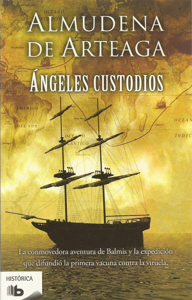 Título: Ángeles Custodios. Autora: Almudena de Arteaga. Idioma: Español. Editorial: B de bolsillo. Una entretenida novela histórica que, entre otras cosas, sirve para conocer cómo se realizó la primera vacunación internacional contra la viruela; una campaña llevada a cabo por la Expedición Balmis a principios del siglo XIX.